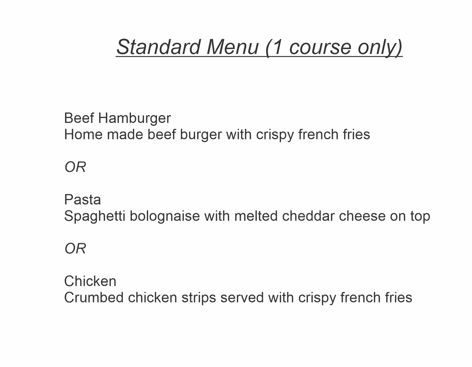 2. Adventure and standard meals option (see menu below)