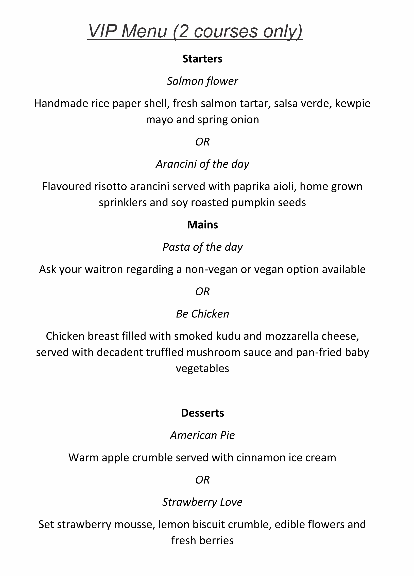 Adventure & VIP meals