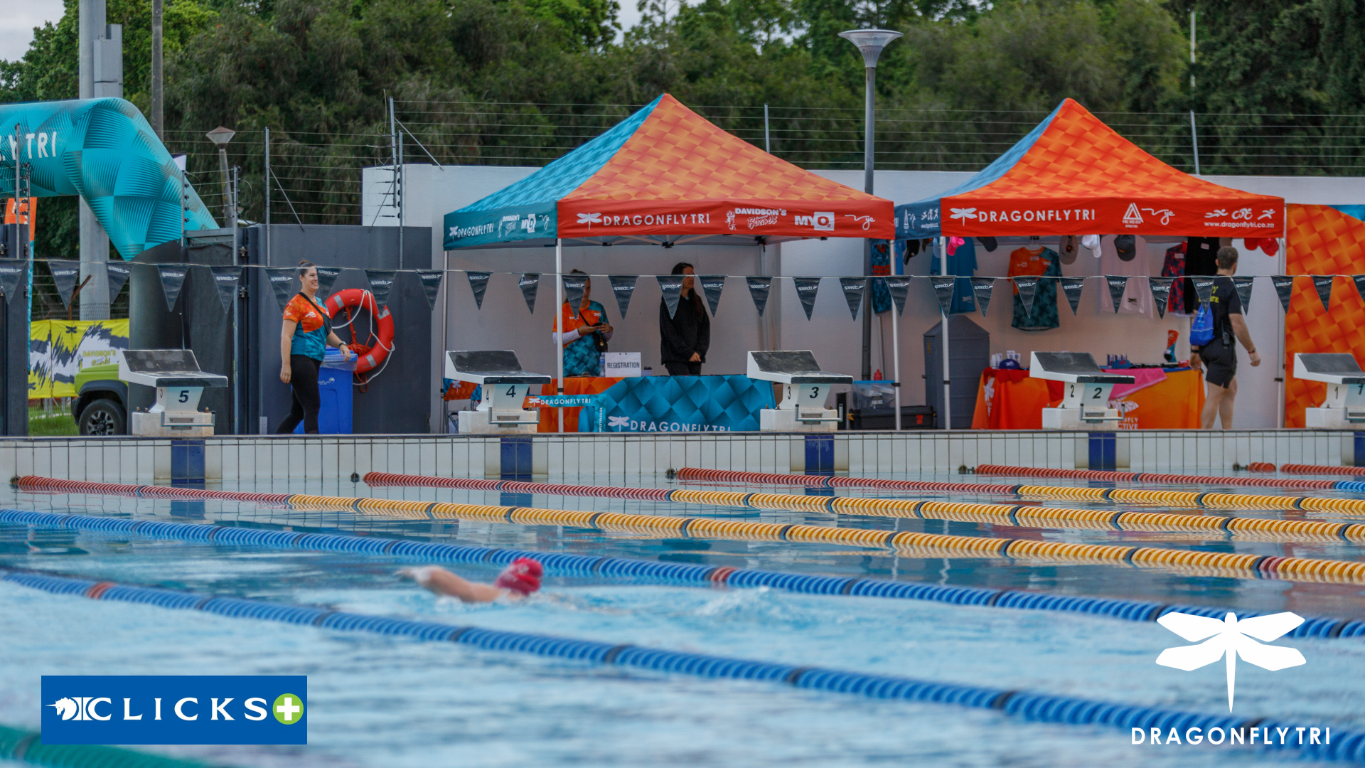The swim leg: 50 meter outdoor heated pool with marshals to make sure you have a safe and enjoyable swim.