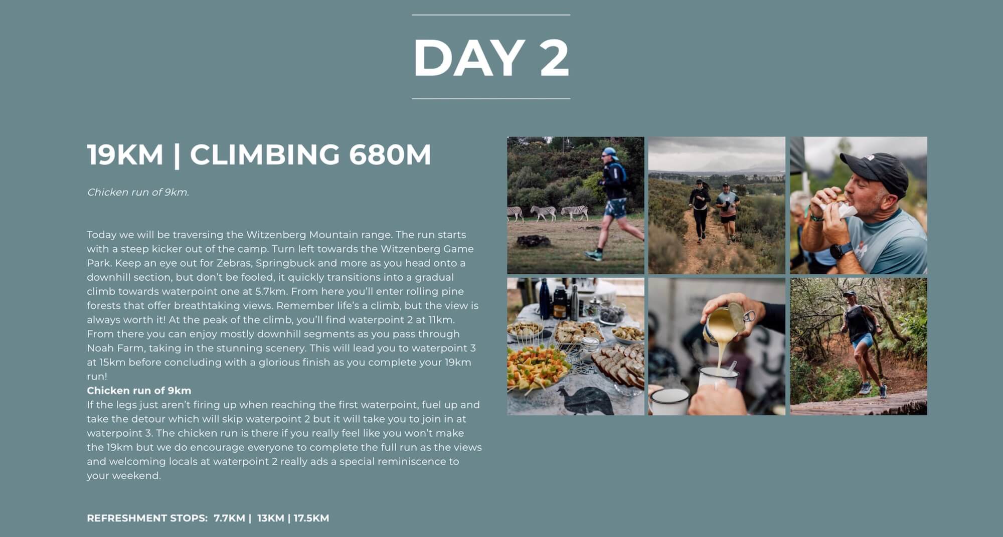 31 km Day1-7km |Day2 -19 km |Day3 -5km | R 9,950.00 |