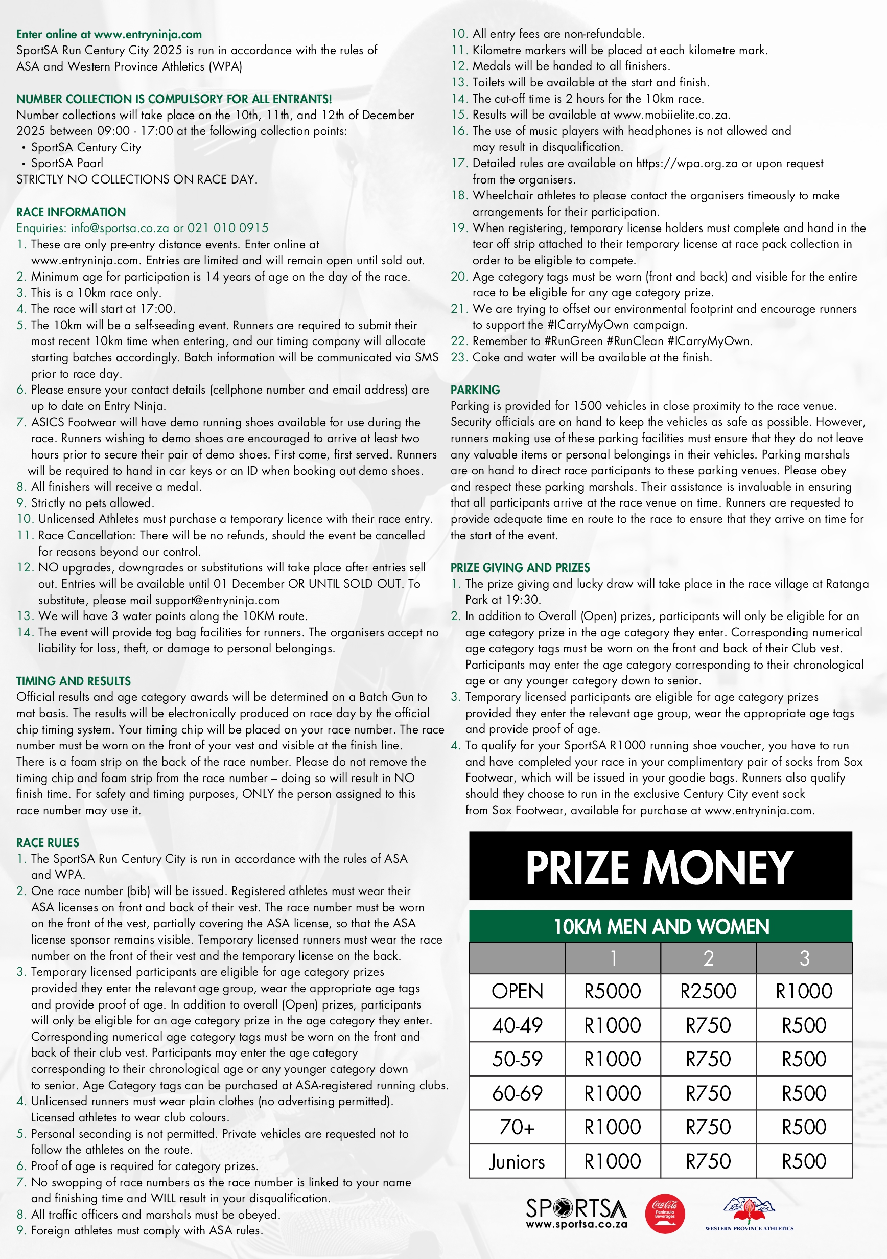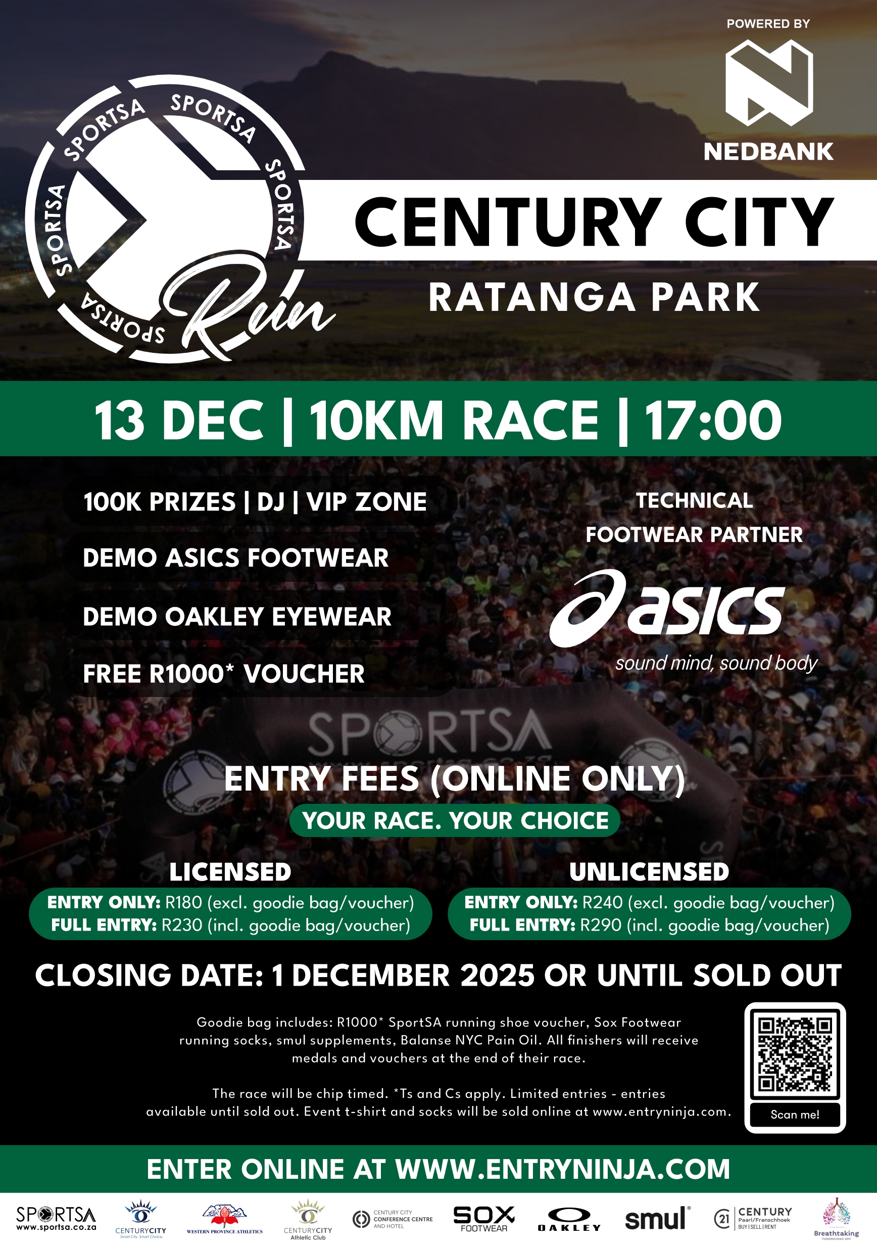 SOLD OUT Includes goodie bag, socks and R1000 shoe voucher. Voucher is distributed at the end of the race with your medal. Runners must run and complete the race in their free pair of socks to be eligible for the voucher |