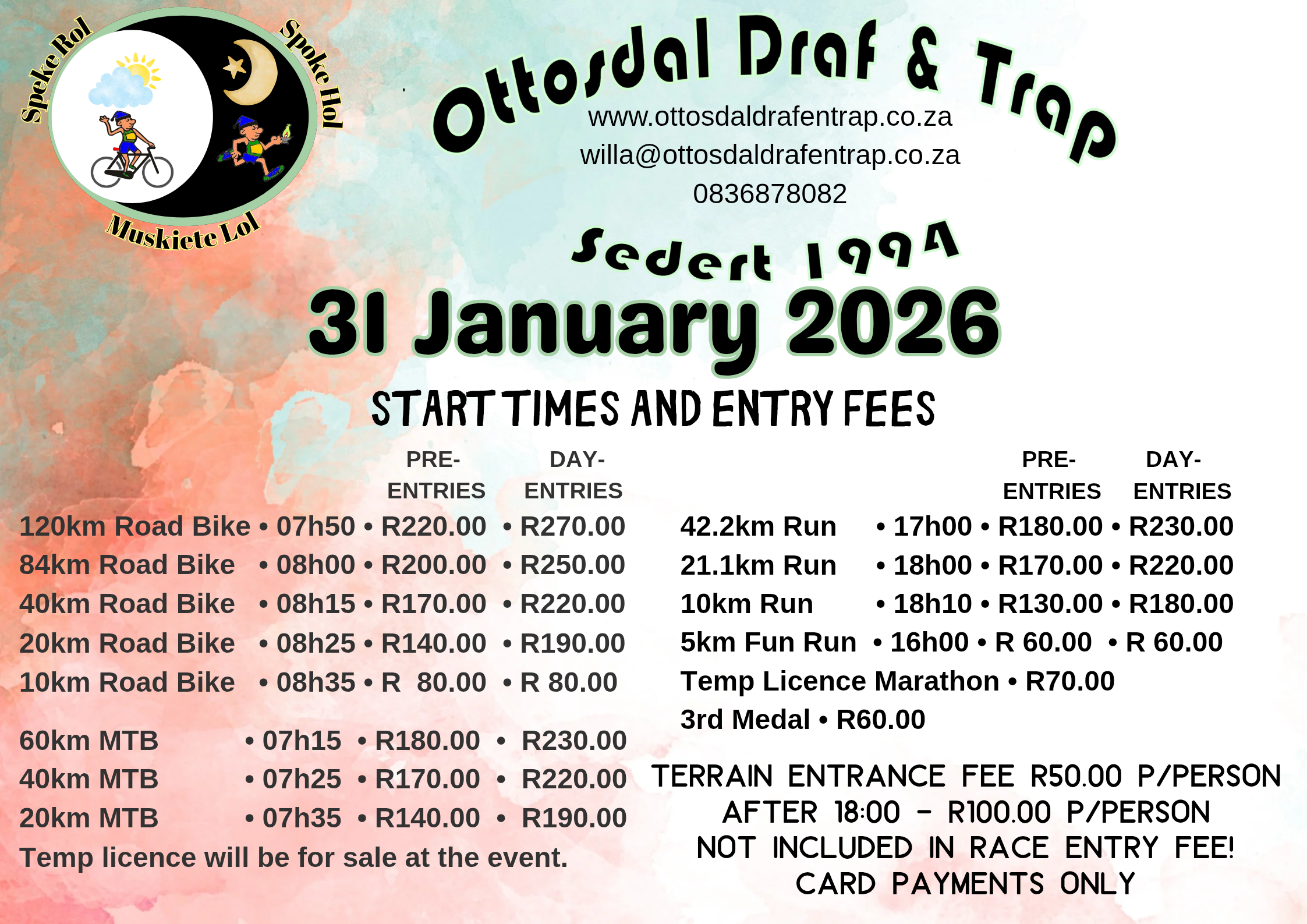 | 60km MTB | 60 km | 07:15 | R 180.00 |
