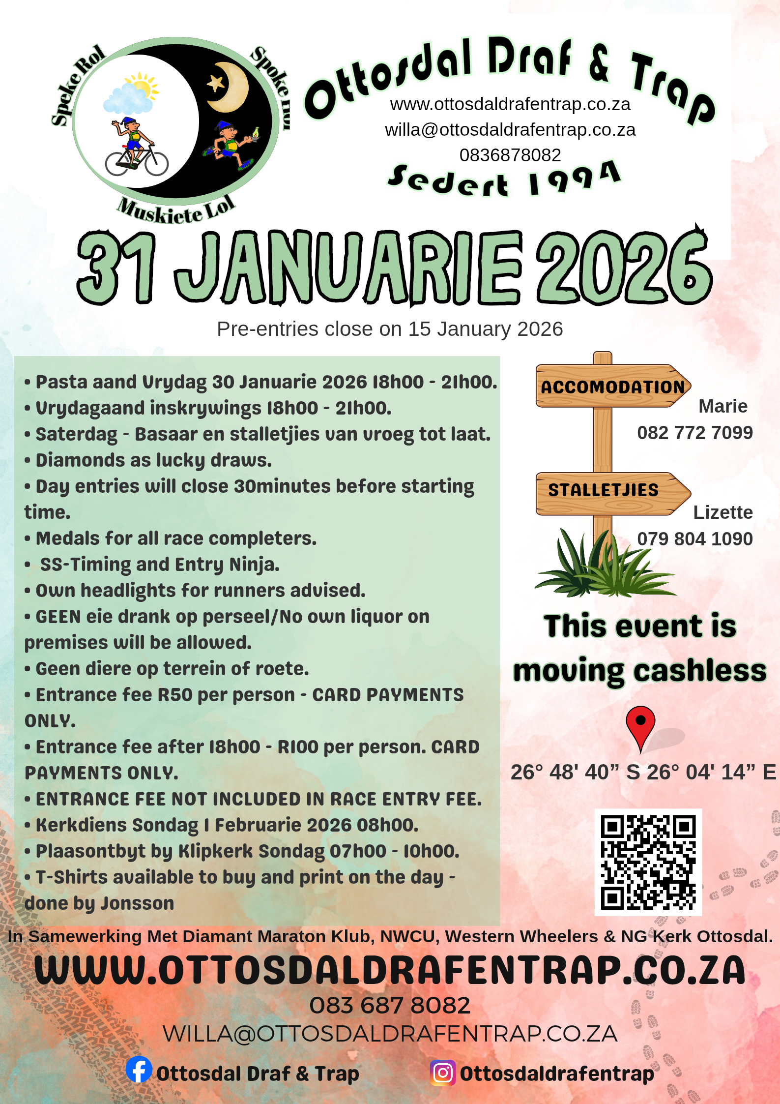 (RACE DAY ENTRIES FRIDAY 18H00-21H00, SATURDAY ENTRIES WILL CLOSE 30MIN PRIOR TO START TIME)