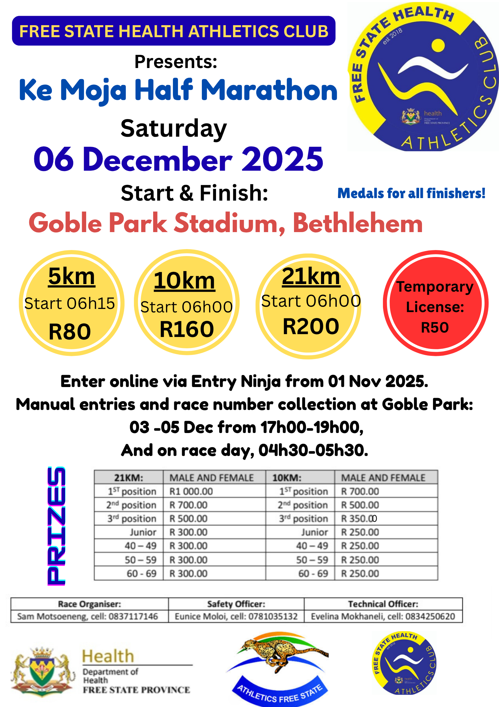 | 5km | 5 km | 06:15 | R 80.00 |