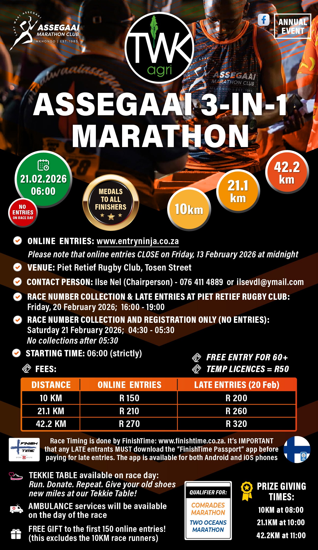 | 10 Km (60+) Free Entry | 10 km | Free |