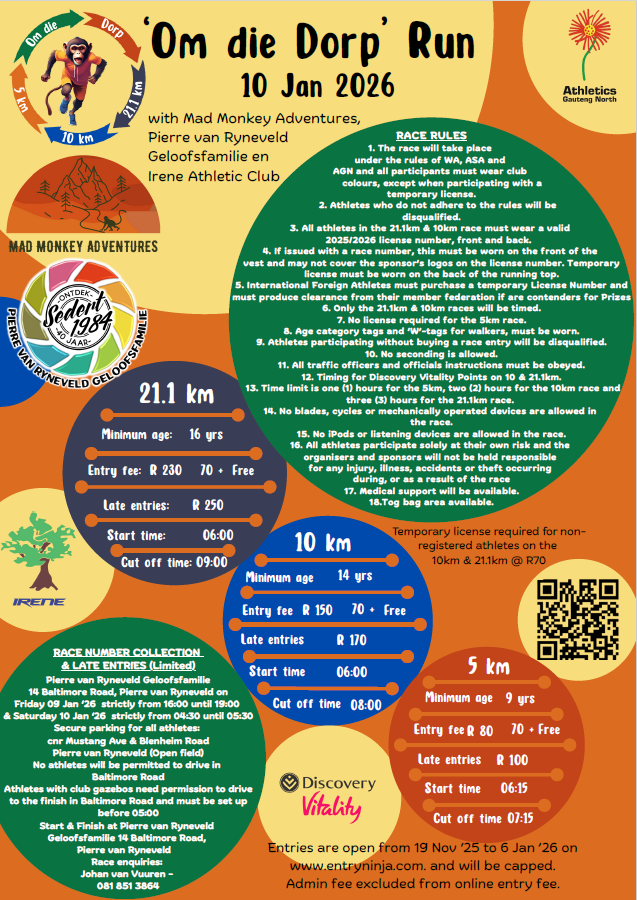 | 10km (R150 + R13.50 Fee) | 10 km | R 163.50 |