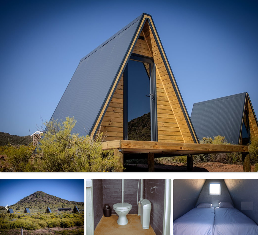 A-FRAMES R1,500.00 per room for the weekend (2 people, 2 nights) The A-Frames consist of insulated wooden cabins with 2 x single beds and bedding. No electricity. Shared ablution facilities with toilets, hand basins and shower. No kitchen facilities. Not pet friendly. | ![]() |