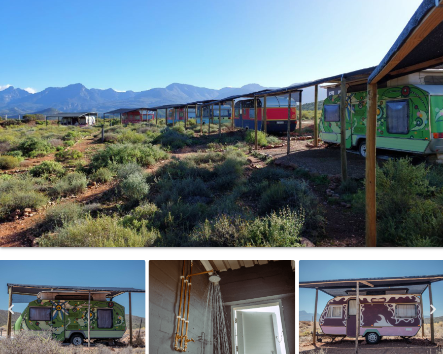 | GYPSY CARAVANS R1,600.00 per caravan for the weekend (2 people, 2 nights) The Gypsy Caravan Village has 8 refurbished and quirky caravans that sleep 2 people each. Situated in a “village” on their own. The caravans are ideally placed in nature with its own private shared ablutions and private boma area. No electricity. No bedding provided. Not pet friendly. | ![]() |