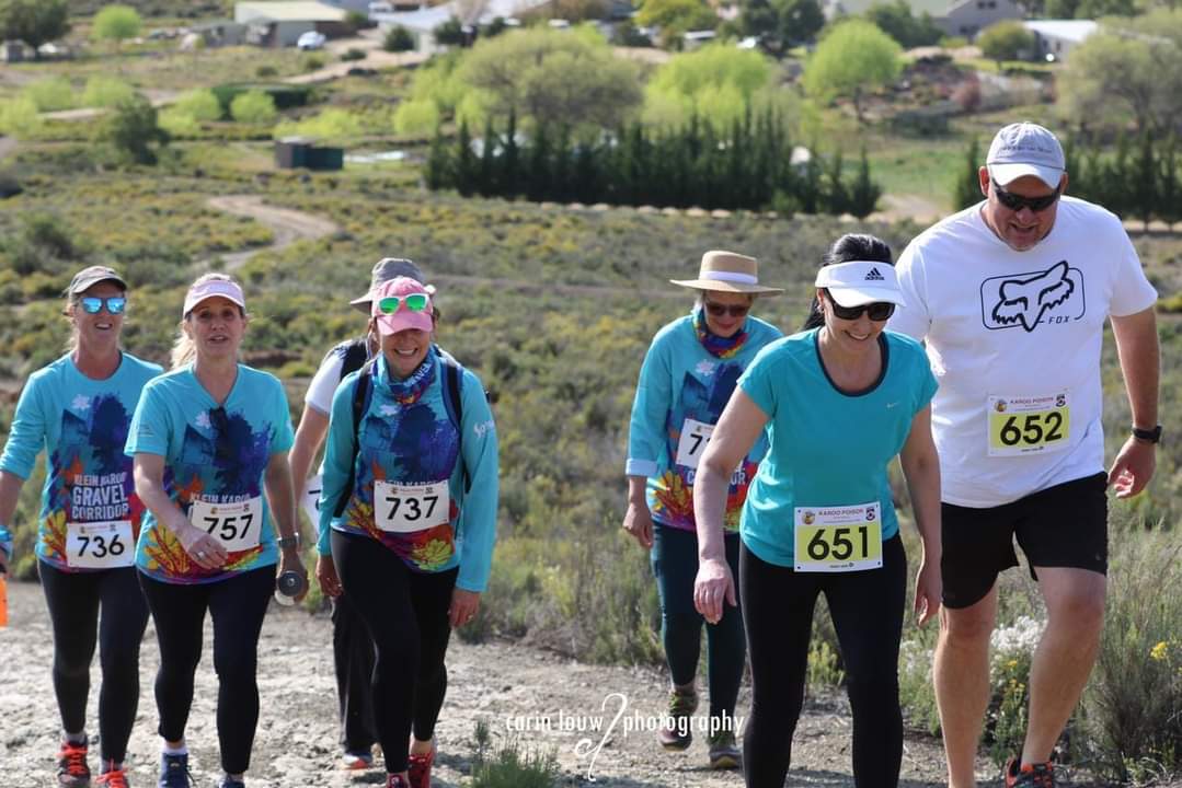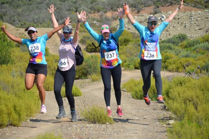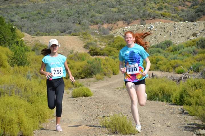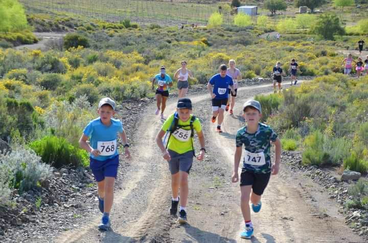 The first half is a bit of a steep climb, gaining elevation of 250m to the top where spectacular views are evident and then all the way down hill through a piece of single track, and the last 4km through a dry river bed to the Finish line