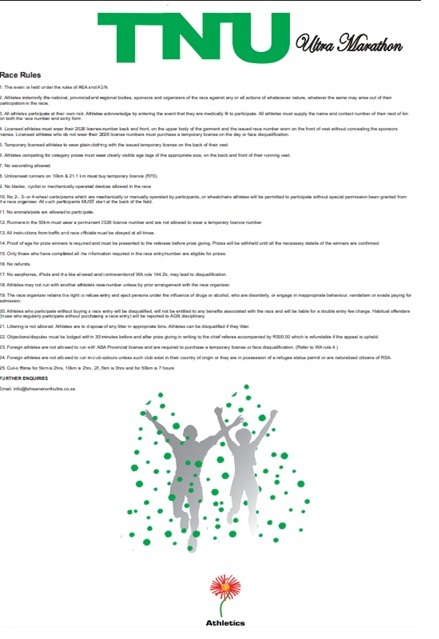 | 50km 60 years and older (R420 + R37.80 Fee) | 50 km | R 457.80 |