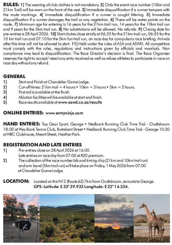 | 5km | 5 km | R 60.00 |