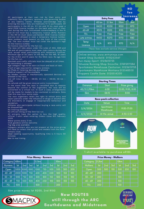 48 km Irene Ultra (60 to 69 Years of Age) (R370 + R33.30 Fee)