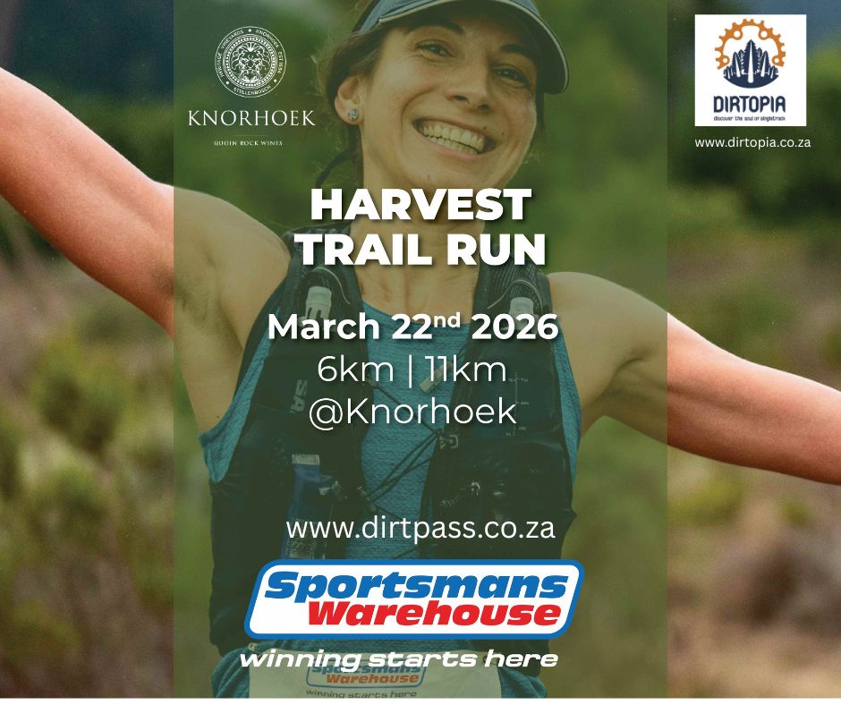 Celebrate harvest season with a morning on the trails below Simonsberg. The Harvest Trail Run takes you through the beautiful Knorhoek valley on custom-built Dirtopia singletrack, winding between forest sections, mountain slopes and vineyard paths.