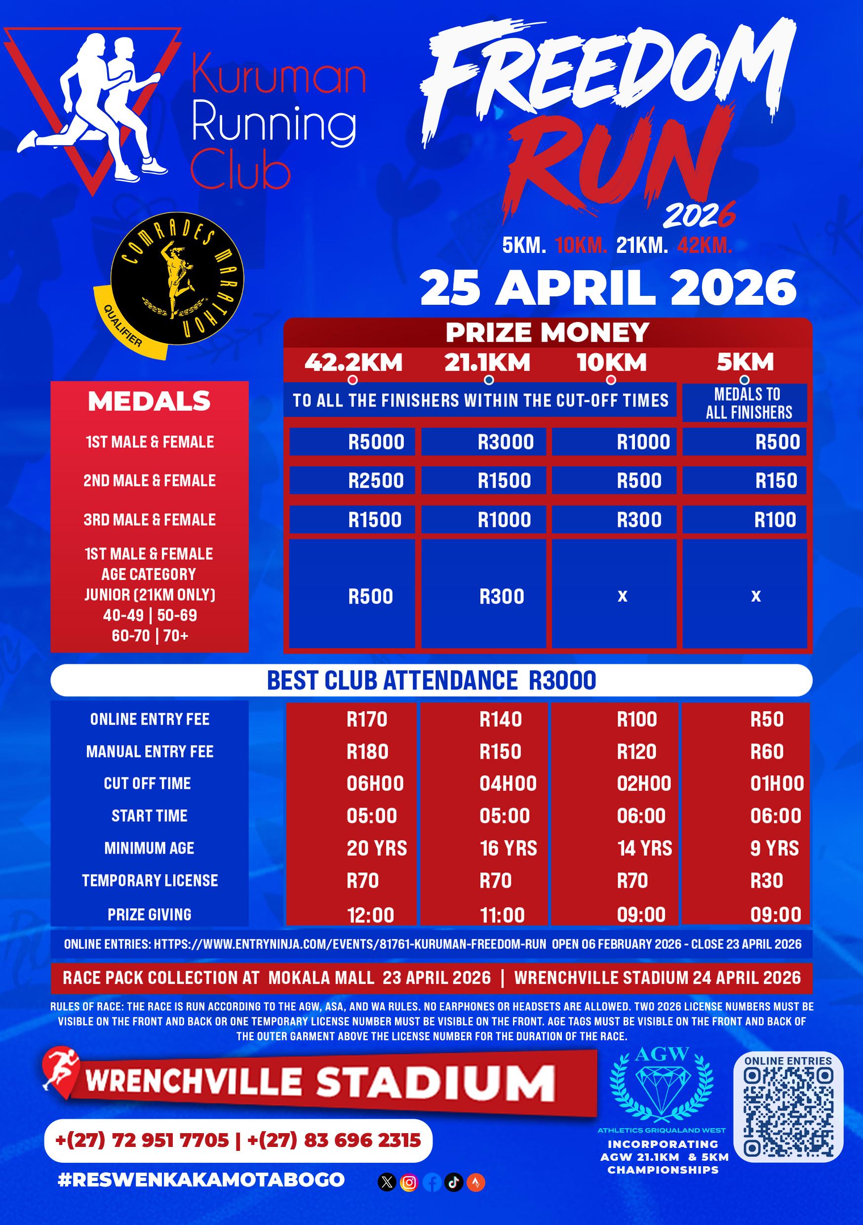 Enter now for Kuruman Freedom Run »