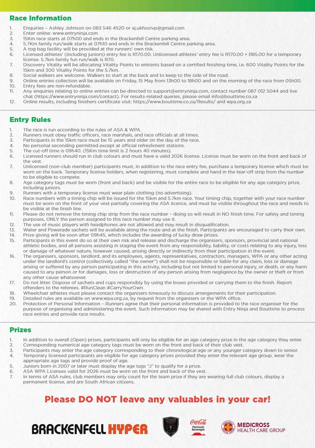 | 5.7km Family Fun Run | 5.7 km | R 70.00 |