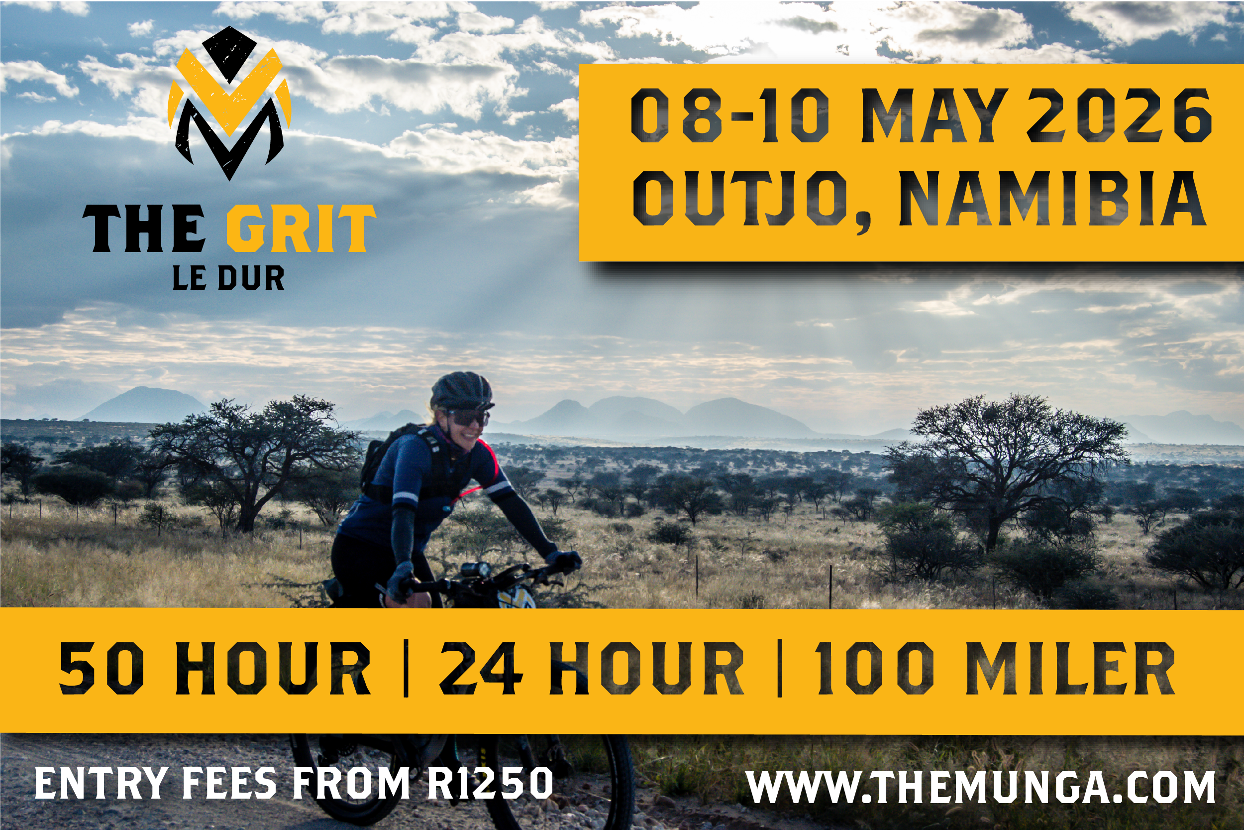 The Grit’s vary from race to race but you can expect roughly half the distance of the Munga MTB, some a bit more, some a bit less. But riders will only have 50 hours to complete the course