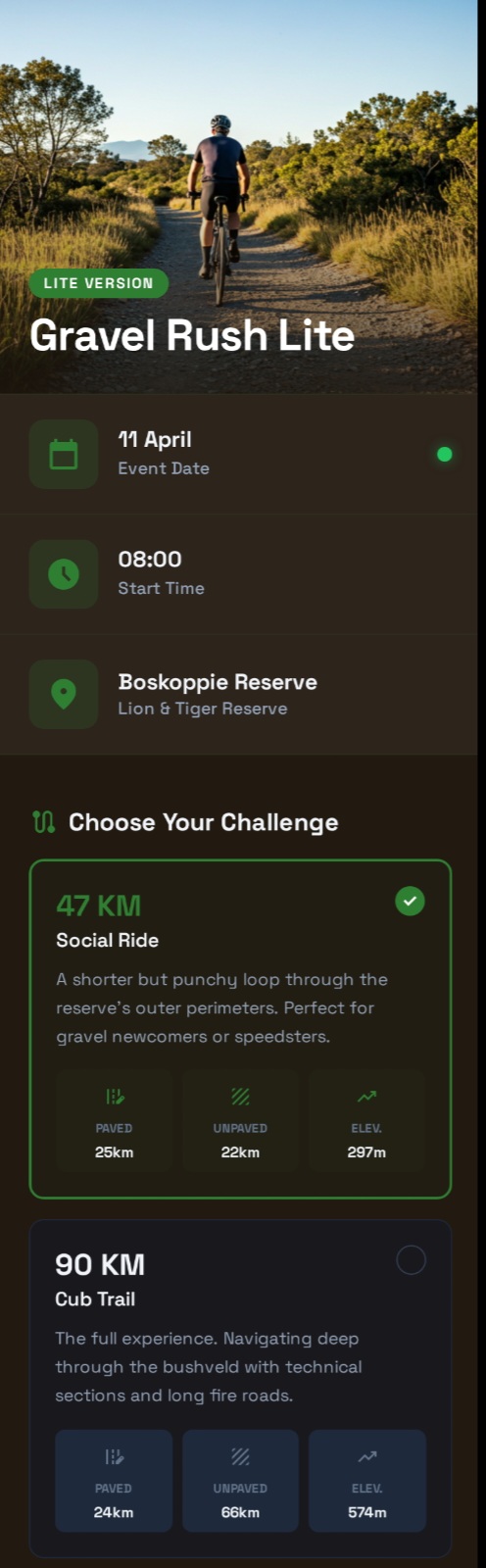 | 47km | 47 km | 08:00 | R 350.00 |