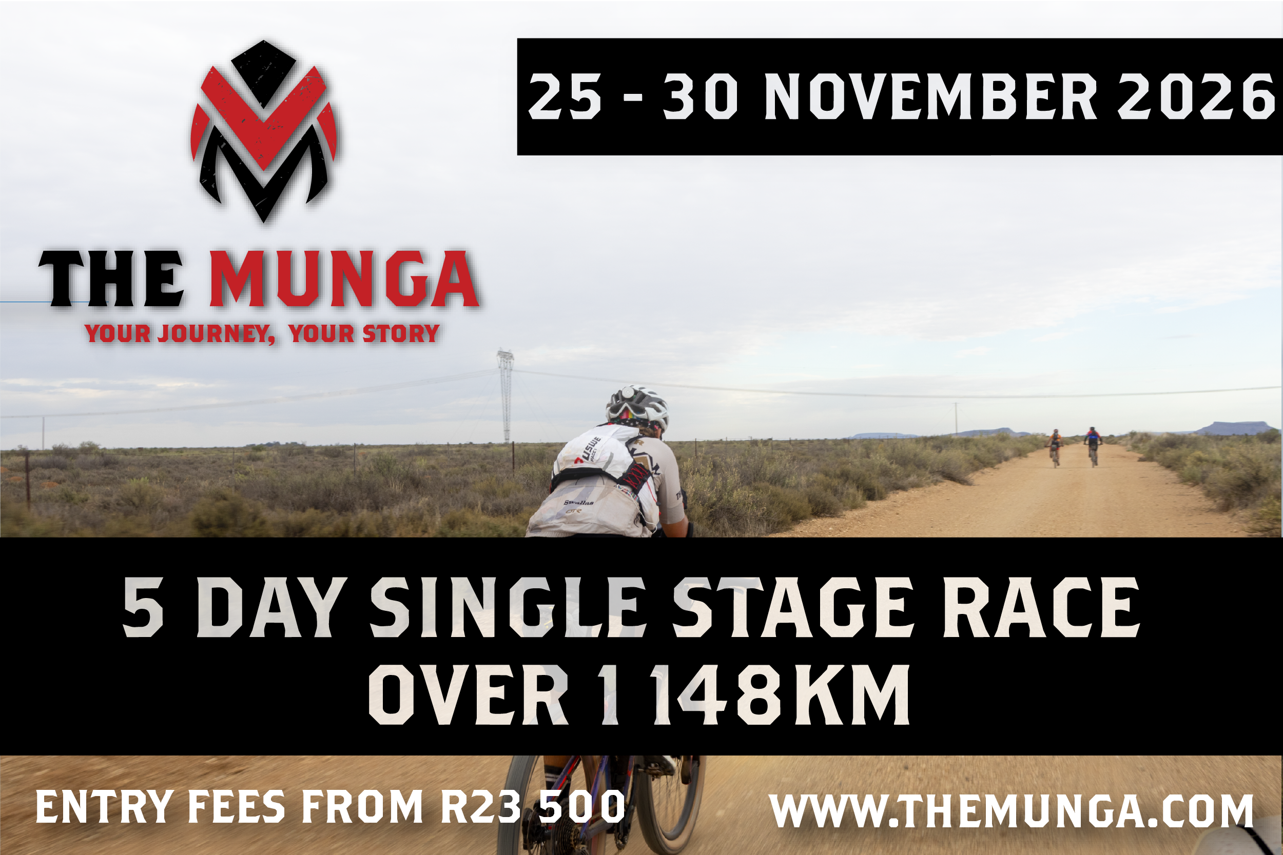 The Munga is South Africa's flagship ultra-endurance mountain bike race. 1,148km. Predominantly off-road. Starting in Bloemfontein, cutting through the raw, ancient heart of the Karoo in the height of summer, and finishing at Doolhof Wine Estate in Wellington. You have 120 hours to get there. What happens in between is entirely up to you.