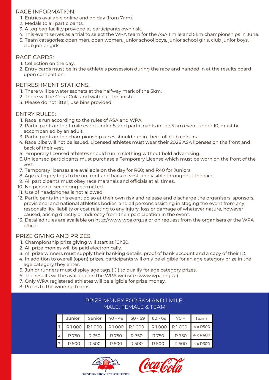 Enter now for WPA 5km & 1 Mile Championships »